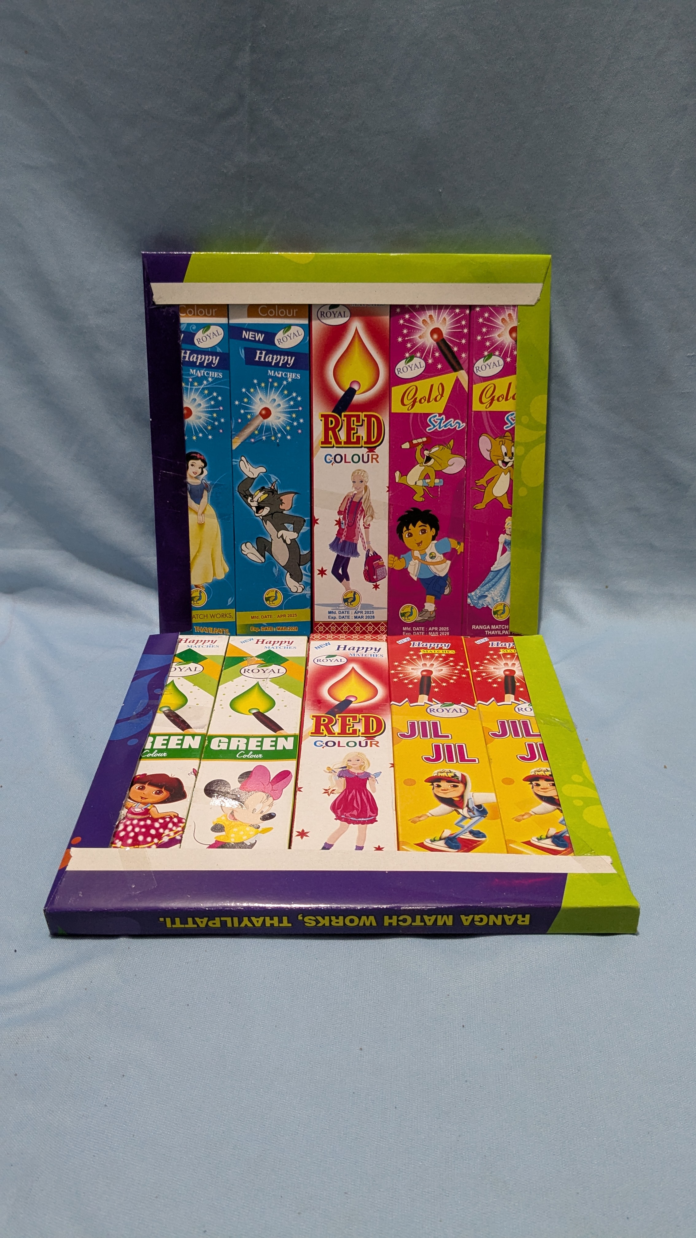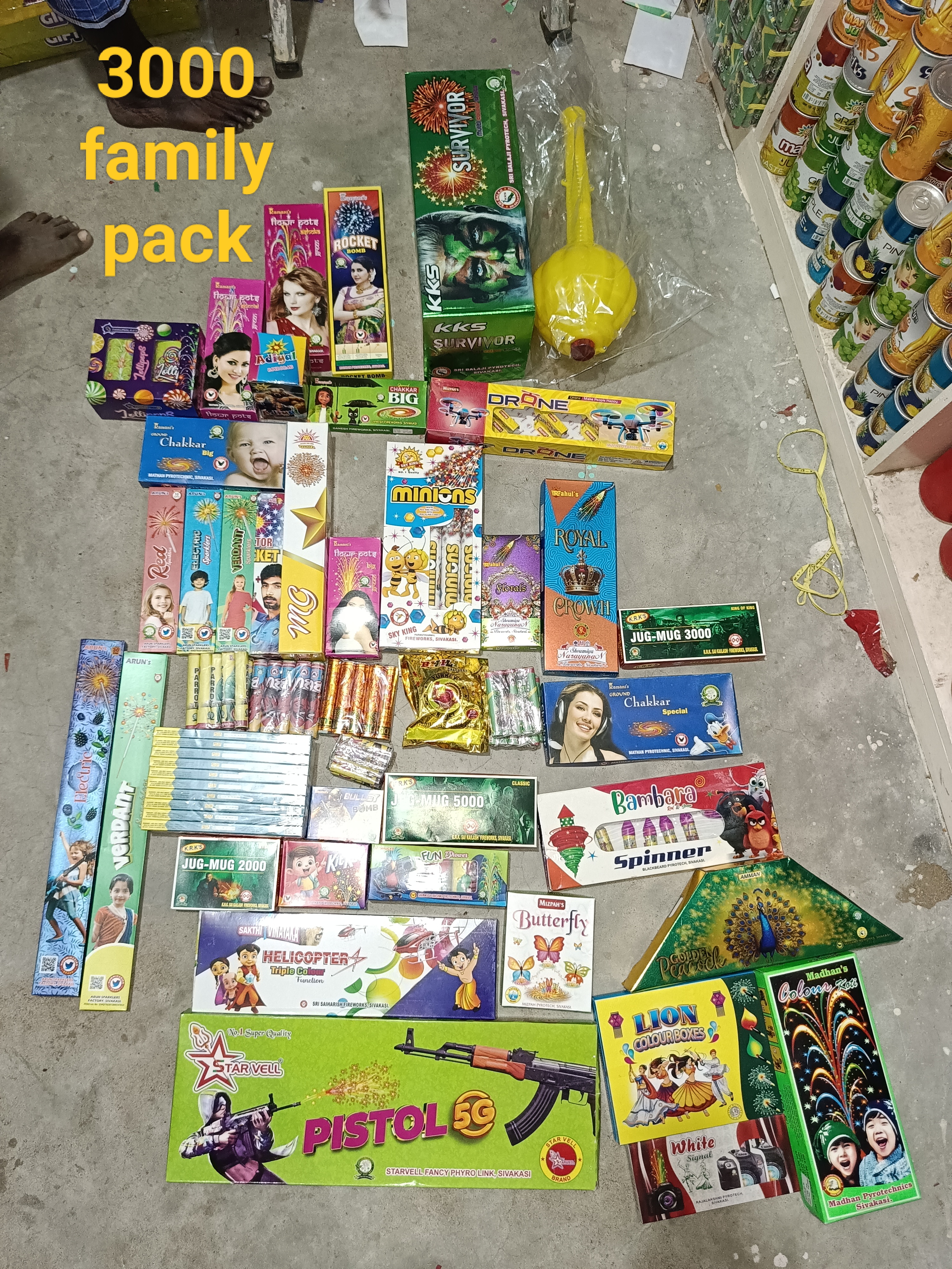 Display items and upto 15 Varieties of gift boxes. We have more over 10 years of experience in this field. We are an authorized business owner of more than 18 branded fireworks.Our classy brand selection that are sold larger in number with greatest customer satisfaction. At Present, we have 3 firework outlets.We make customized order which brings in profits to small business customers. We serve all over Tamil Nadu and South India.